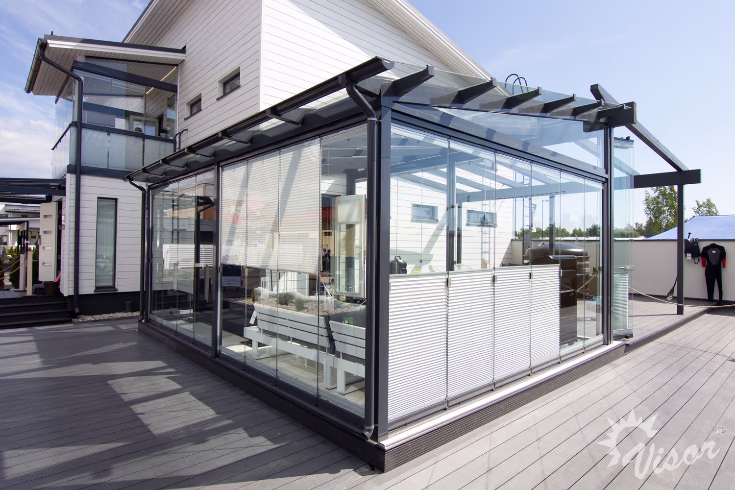 Luo terassistasi mukava oleskelutila Visor® terassikaihtimilla – tyylikäs ja käytännöllinen suoja vuoden ympäri!