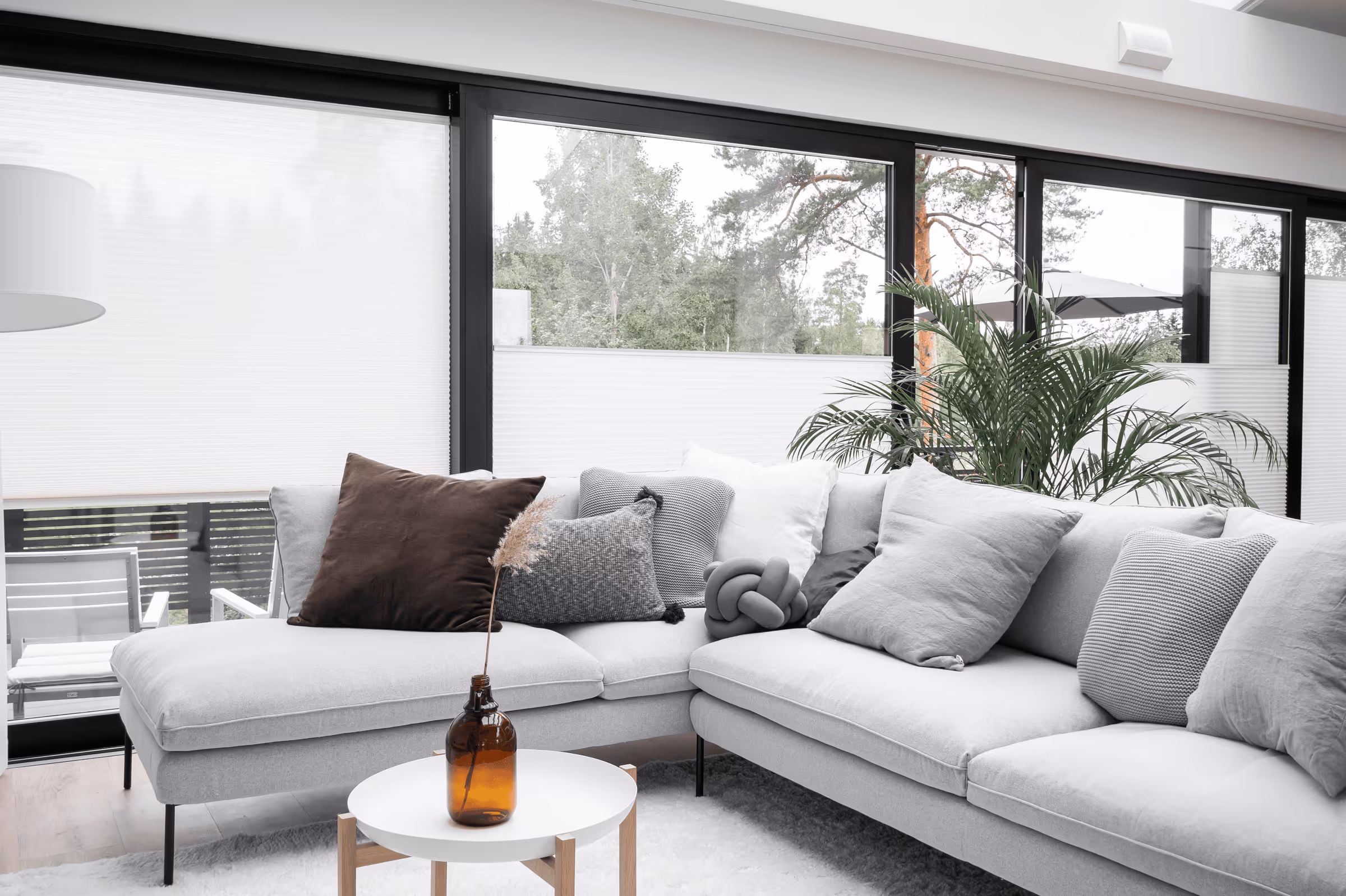 Minimalistinen ja moderni muotoilu varmistaa, että kaihtimet sulautuvat kauniisti osaksi sisustusta.